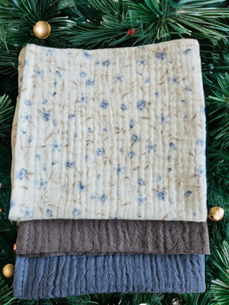 Het perfecte cadeaupakket voor de feestdagen! Deze 3 limited edition zakdoeken combineren zachte kleuren en unieke prints, waaronder onze speciale feestpatronen. Gemaakt van dubbelgaas mousseline in Oeko-Tex katoen, voelen ze heerlijk licht en comfortabel aan. Duurzaam, herbruikbaar en klaar om te geven met liefde.